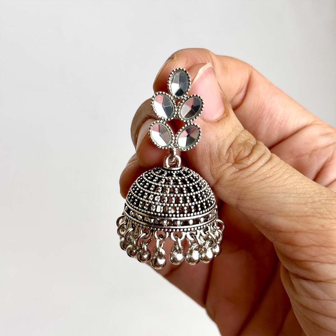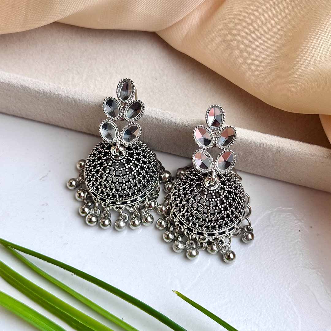 Oxidized silver jhumki earrings with silver bead hangings and leaf shaped petals on top.Length 2 inchExperience excellence with our products expect 100% identical, high-quality items as showcased in the pictures. Your satisfaction, our commitment.Preserve your jewelry's beauty keep away from water, perfume, and chemicals. Clean with a soft, dry cloth for lasting shine..Oxidized silver jhumki earrings with silver bead hangings and leaf shaped petals on top. Length 2 inch Experience excellence with our products expect 100% identical, high-quality items as showcased in the pictures. Your satisfaction, our commitment. Preserve your jewelry's beauty keep away from water, perfume, andOxidized silver jhumki earrings with silver bead hangings and leaf shaped petals on top. Length 2 inch Experience excellence with our products expect 100% identical, high-quality items as showcased in the pictures. Your satisfaction, our commitment.
