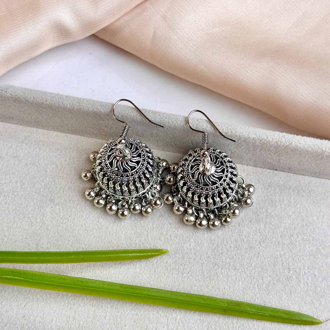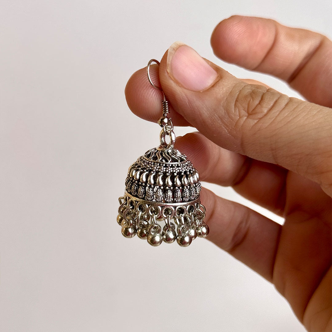 Light weight, silver jhumka earrings with silver bead hangings.Length 1.8 inchExperience excellence with our products expect 100% identical, high-quality items as showcased in the pictures. Your satisfaction, our commitment.Preserve your jewelry's beauty keep away from water, perfume, and chemicals. Clean with a soft, dry cloth for lasting shine. Light weight, silver jhumka earrings with silver bead hangings.Length 1.8 inch Experience excellence with our products expect 100% identical, high-quality items as showcased in the pictures. Your satisfaction, our commitment. Preserve your jewelry's beauty keep away from water, perfume, and chemicals. Clean with Light weight, silver jhumka earrings with silver bead hangings.Length 1.8 inch Experience excellence with our products expect 100% identical, high-quality items as showcased in the pictures. Your satisfaction, our commitment. Preserve your jewelry's beauty keep away from water, perfume, and chemicals.